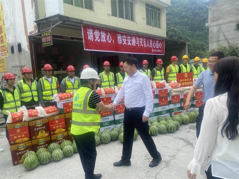 6月8日,省總工會(huì)黨組書記、副主席宋開慧赴寶興縣看望慰問雅安交建集團(tuán)“6·1”地震應(yīng)急搶險(xiǎn)一線人員,并開展“送清涼”活動(dòng)。雅安市委常委、市總工會(huì)主席李蓉,寶興縣委常委、縣總工會(huì)主席姚偉東陪同慰問。