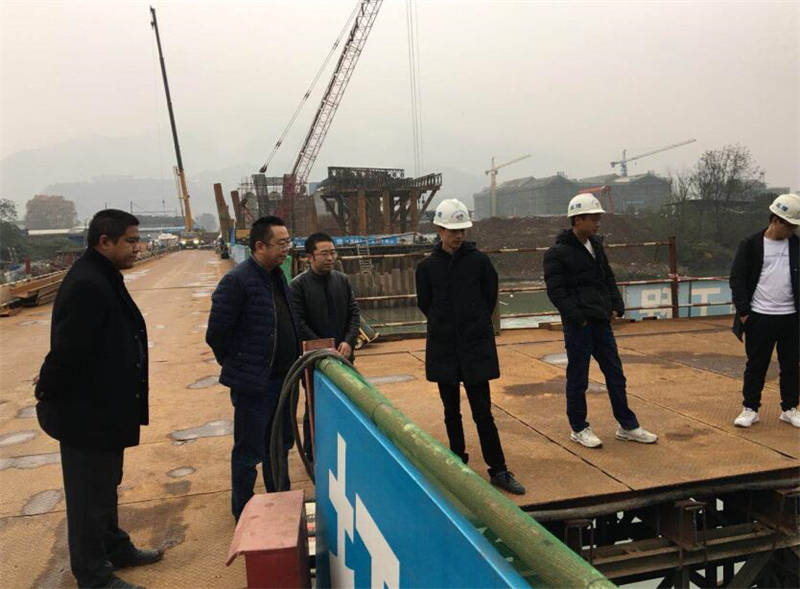 11月14日,交建集團總經理羅倫全一行到多營青衣江大橋項目現場檢查建設進度情況。羅倫全首先聽取了現場管理人員匯報情況,隨后實地檢查了大橋的引橋和主橋建設情況。針對引橋現澆梁建設情況,羅倫全要求施工單位要加快現場建設,做好模板綁扎和混凝土供應工作;針對主橋建設情況,羅倫全要求施工單位要想方設法克服困難,做好承臺的澆筑工作。
