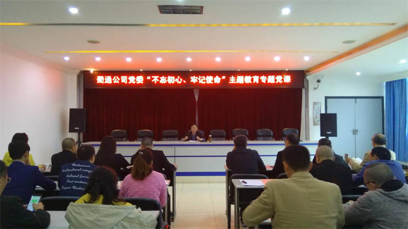 10月24日,公司黨委“不忘初心、牢記使命”主題教育專題黨課在蜀通公司機關(guān)大會議室舉行,公司黨委書記吳誠向蜀通公司、公交公司黨員講專題黨課。公司黨支部書記、和黨員代表共35人參加。