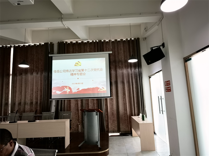 6月14日,佳岳公司3樓會議室召開省第十二次黨代會精神專題學(xué)習(xí)會,公司班子成員、中層干部、黨員及入黨積極分子參加。