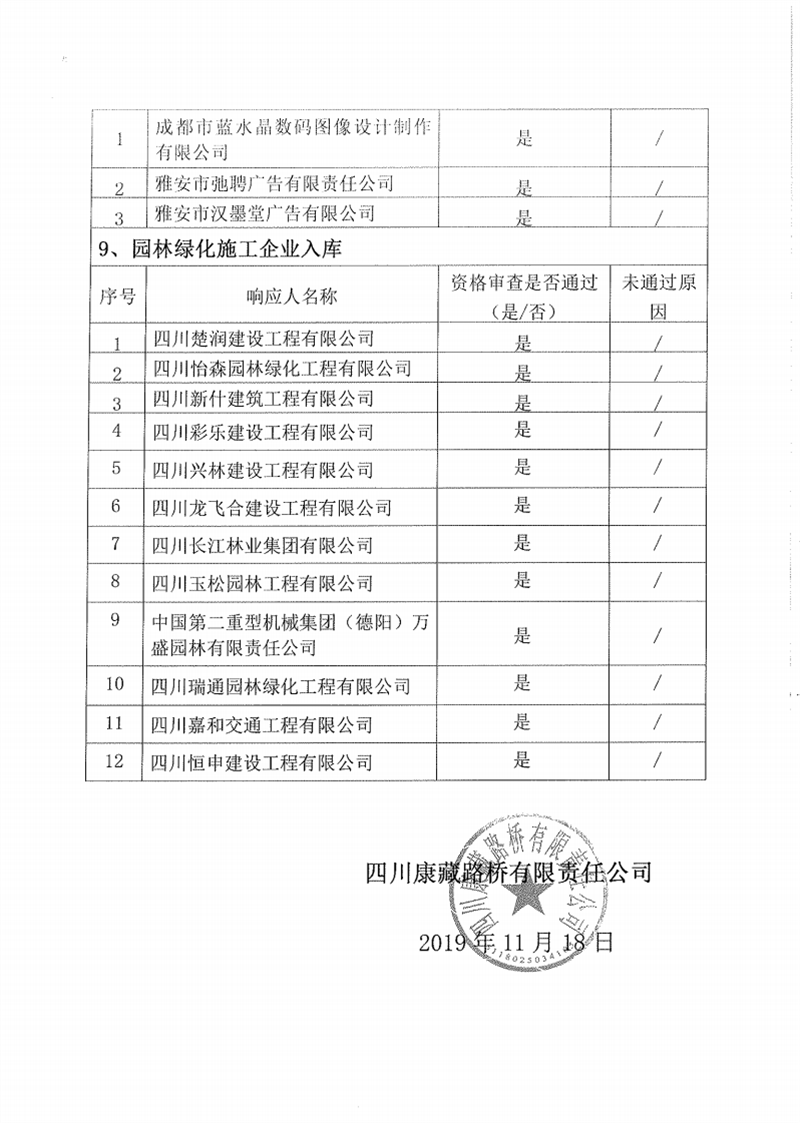 四川康藏路橋有限責任公司企業(yè)入庫比選結果公示