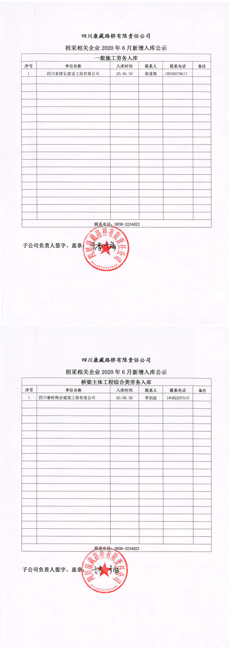 四川康藏路橋有限責任公司招采相關企業(yè)2020年6月新增入庫公示