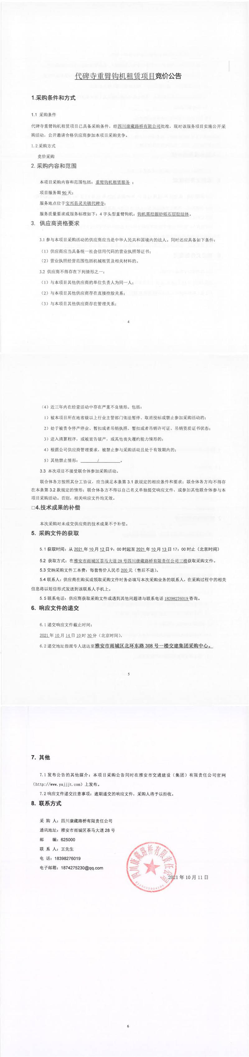 四川康藏路橋有限責(zé)任公司代碑寺重臂鉤機(jī)租賃項(xiàng)目競(jìng)價(jià)公告