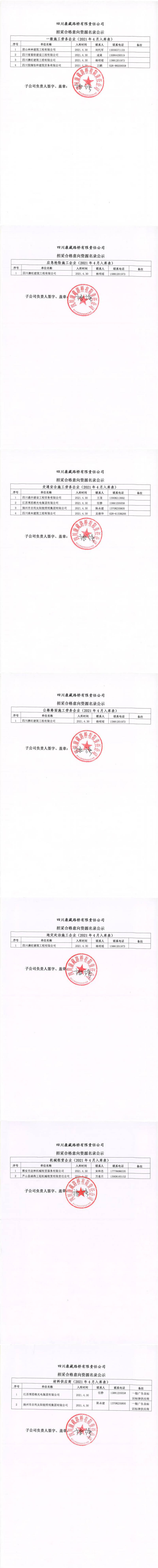 四川康藏路橋有限責任公司招采合格意向資源名錄公示