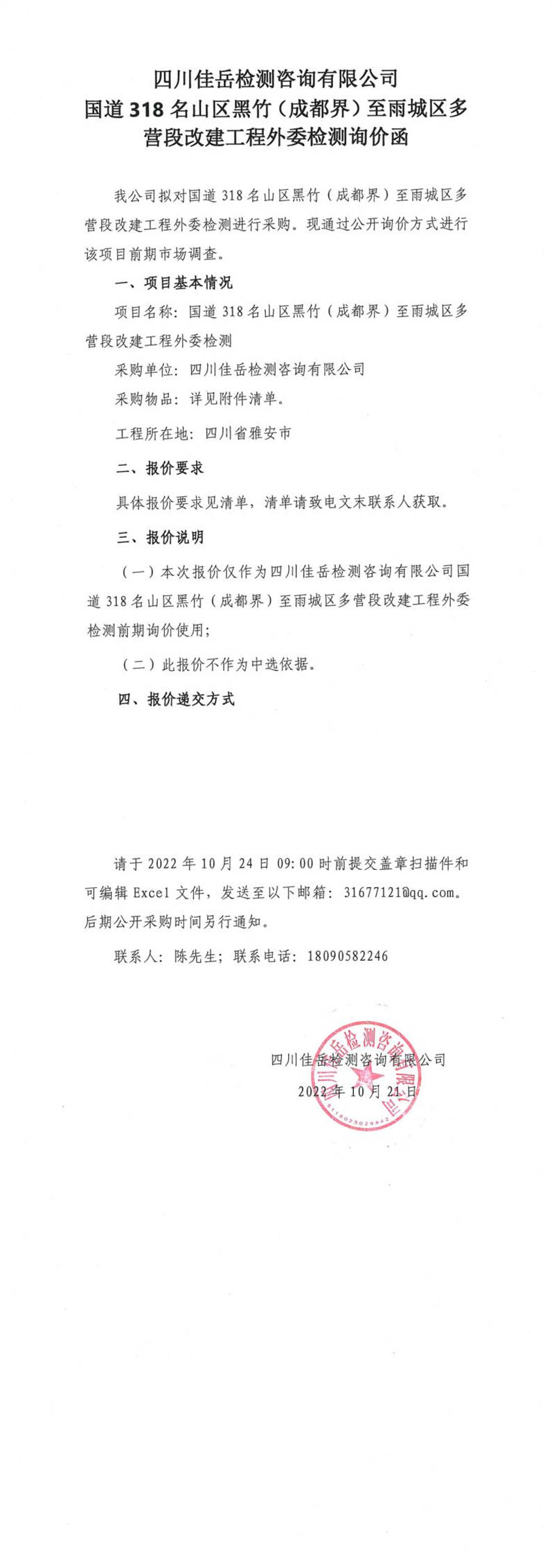 四川佳岳檢測(cè)咨詢有限公司國道318名山區(qū)黑竹(成都界)至雨城區(qū)多營(yíng)段改建工程外委檢測(cè)詢價(jià)函