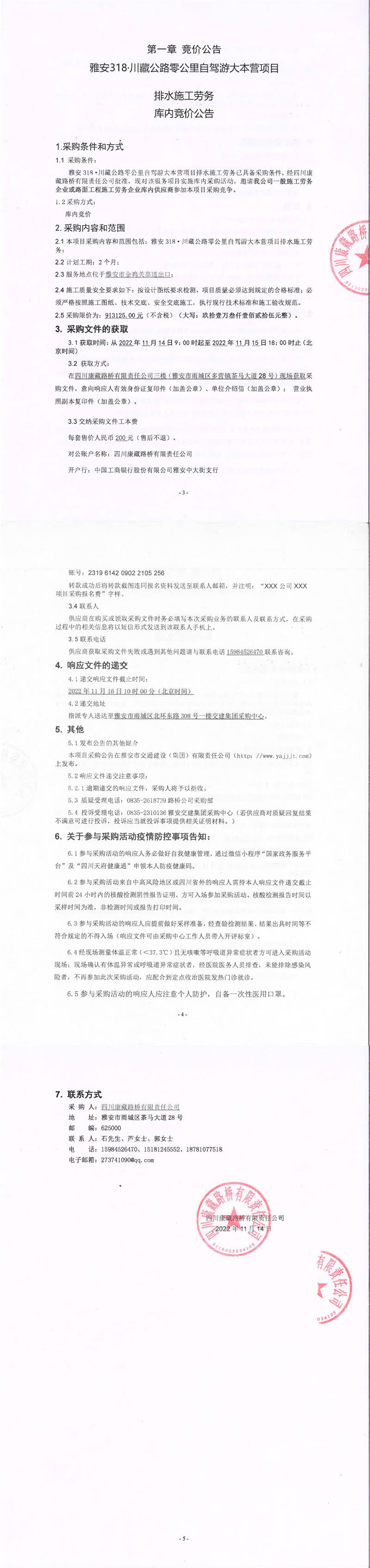 四川康藏路橋有限責(zé)任公司雅安318.川藏公路零公里自駕游大本營(yíng)項(xiàng)目排水施工勞務(wù)庫(kù)內(nèi)競(jìng)價(jià)公告