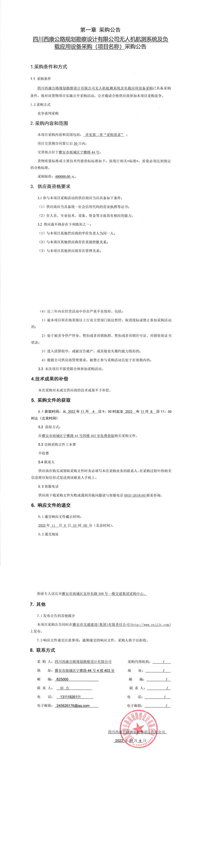 四川西康公路規(guī)劃勘察設(shè)計(jì)有限公司無(wú)人機(jī)航測(cè)系統(tǒng)及負(fù)載應(yīng)用設(shè)備采購(gòu)(項(xiàng)目名稱(chēng))采購(gòu)公告