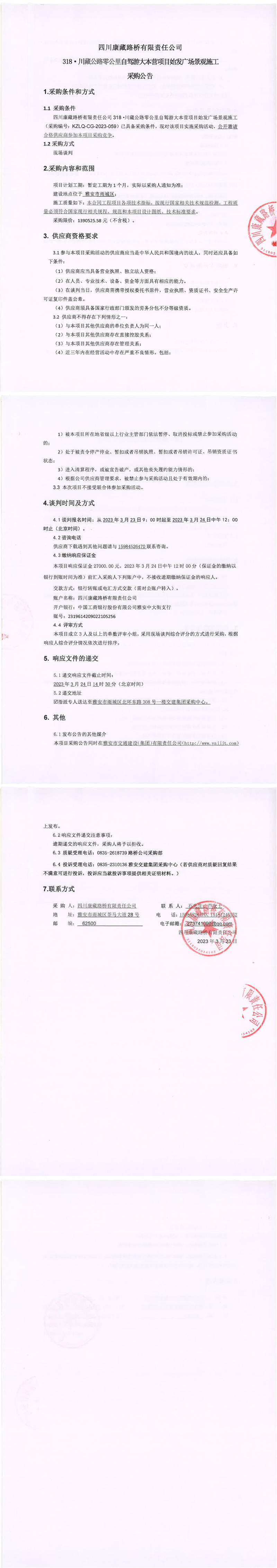 四川康藏路橋有限責(zé)任公司318·川藏公路零公里自駕游大本營項目始發(fā)廣場景觀施工采購公告