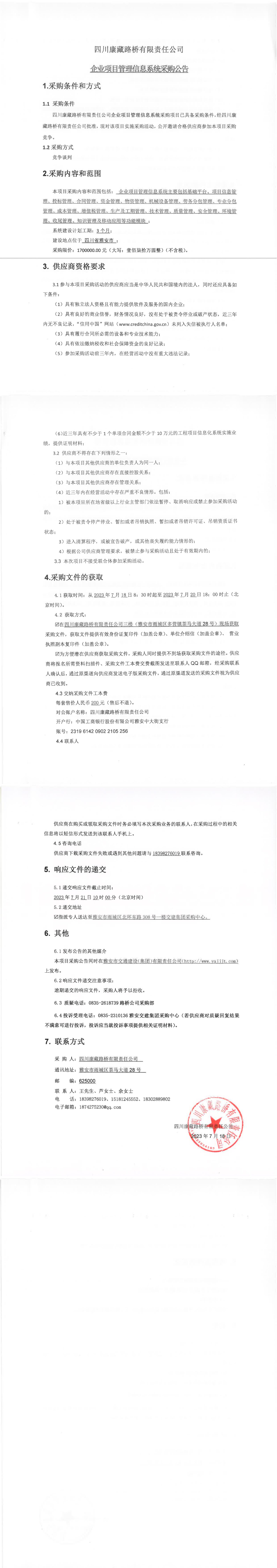 四川康藏路橋有限責(zé)任公司企業(yè)項(xiàng)目管理信息系統(tǒng)采購公告