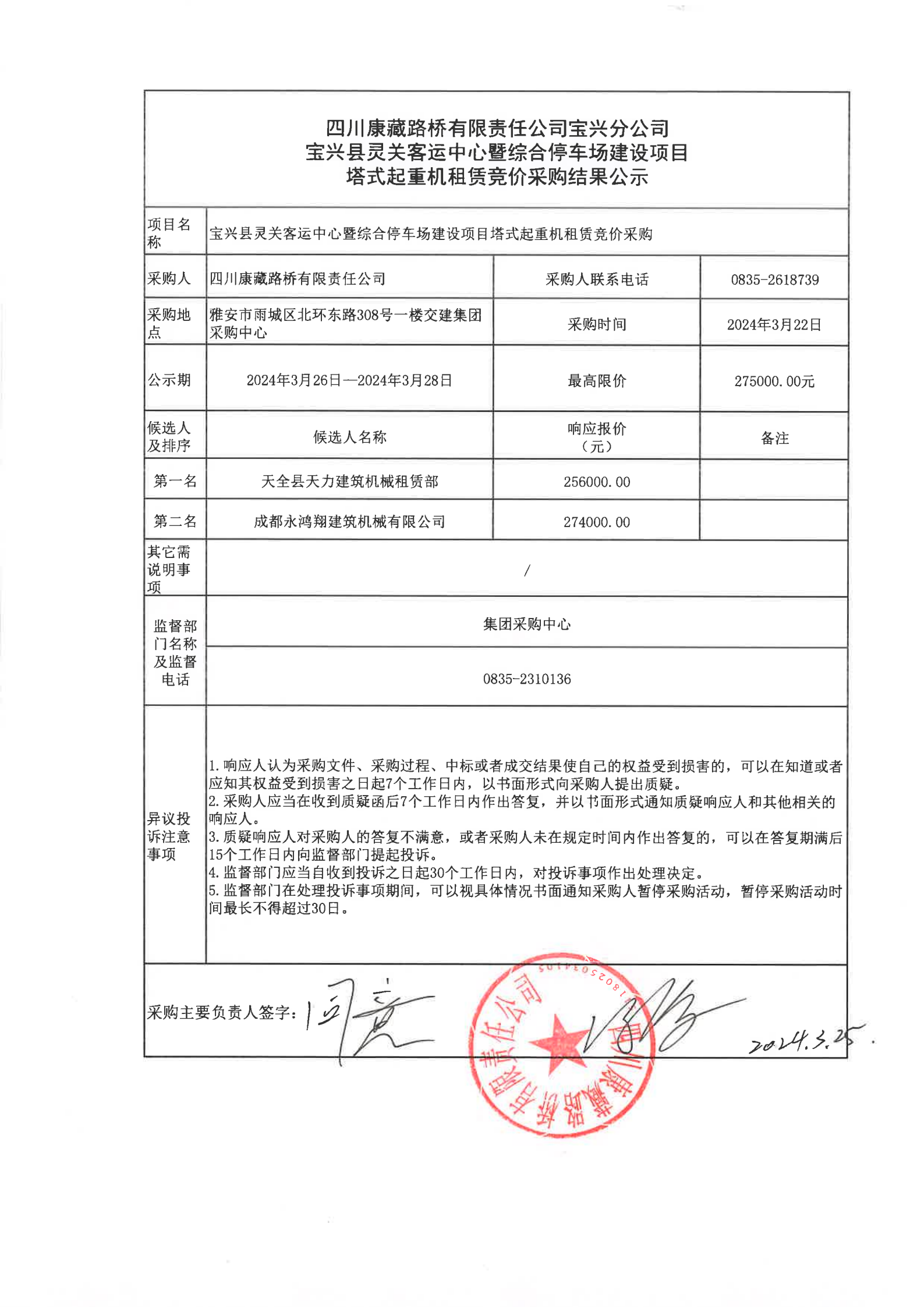 四川康藏路橋有限責(zé)任公司寶興縣靈關(guān)客運(yùn)中心暨綜合停車場建設(shè)項(xiàng)目塔式起重機(jī)租賃競價(jià)采購結(jié)果公示