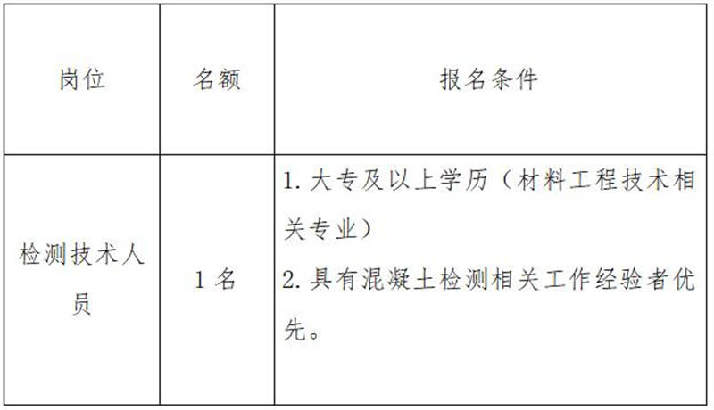 雅安交建集團康居建設工程質(zhì)量與室內(nèi)環(huán)境污染檢測有限公司是雅安市交通建設(集團)有限責任公司下屬子公司,主要從事民用建筑室內(nèi)環(huán)境污染檢測業(yè)務。現(xiàn)根據(jù)公司業(yè)務發(fā)展需要,擬向社會公開招聘1名技術檢測人員,現(xiàn)將有關事項公告如下: