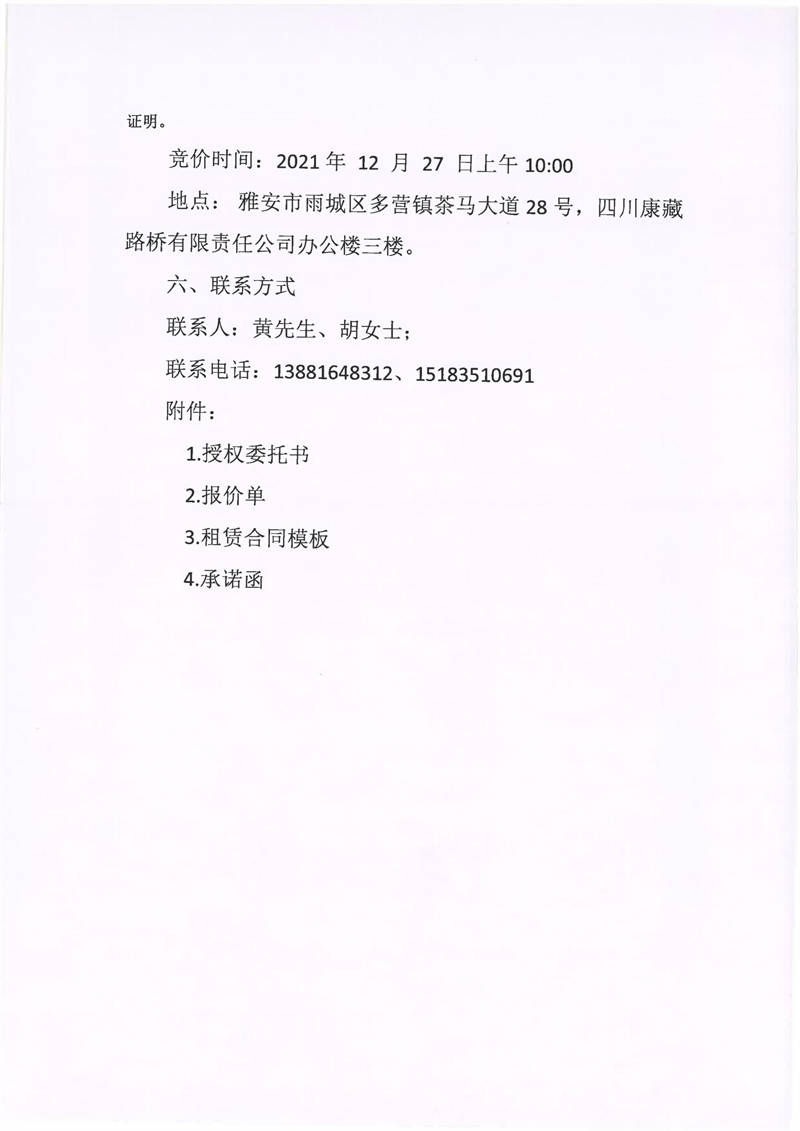 四川康藏路橋有限責(zé)任公司關(guān)于雅安市雨城區(qū)多營(yíng)鎮(zhèn)茶馬大道28號(hào)三樓9間辦公用房招租的公告