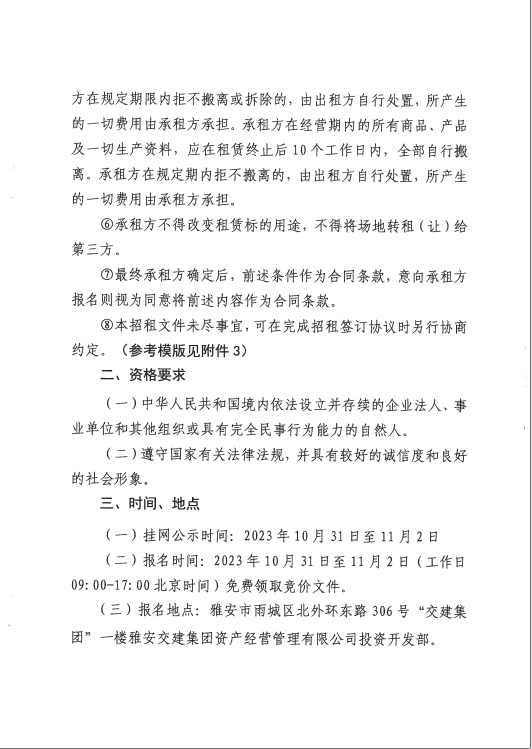 雅安交建資產(chǎn)經(jīng)營(yíng)管理有限公司雨名快速通道黑碾子場(chǎng)地招租公告