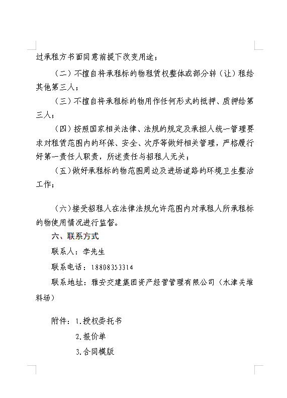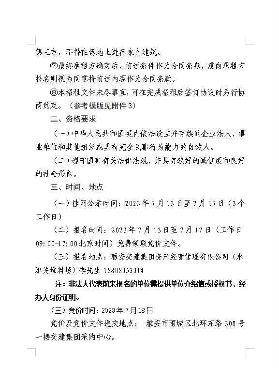 雅安交建集團(tuán)資產(chǎn)經(jīng)營管理有限公司 雅安市雨城區(qū)大興鎮(zhèn)水津關(guān)堆料場龍溪村四組和八組部分閑置臨時(shí)用地招租公告附件
