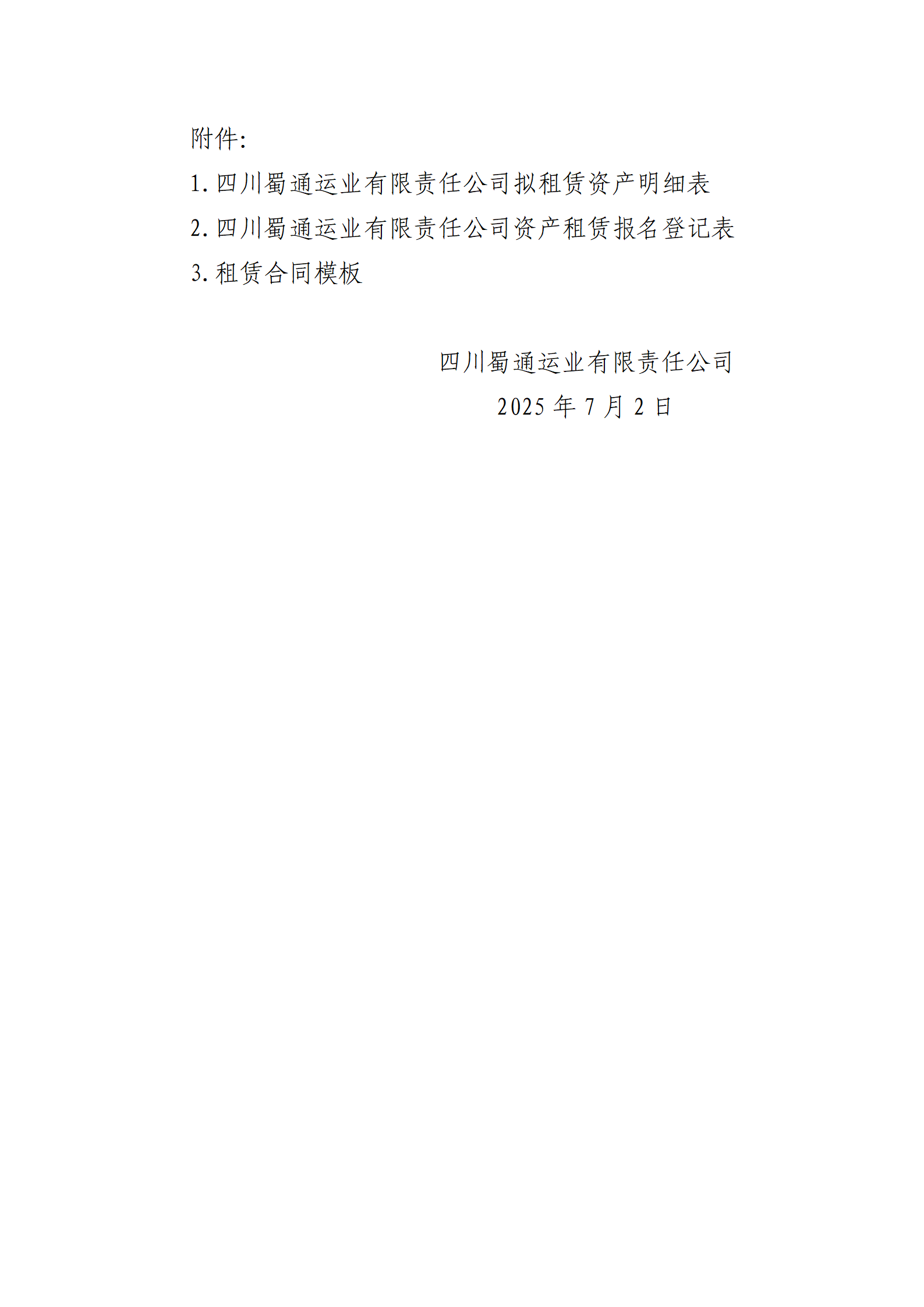 四川蜀通運(yùn)業(yè)有限責(zé)任公司 關(guān)于康藏路61號(hào)附1號(hào)門(mén)面、康藏路85號(hào)場(chǎng)地兩處資產(chǎn)進(jìn)行掛網(wǎng)招租的公告