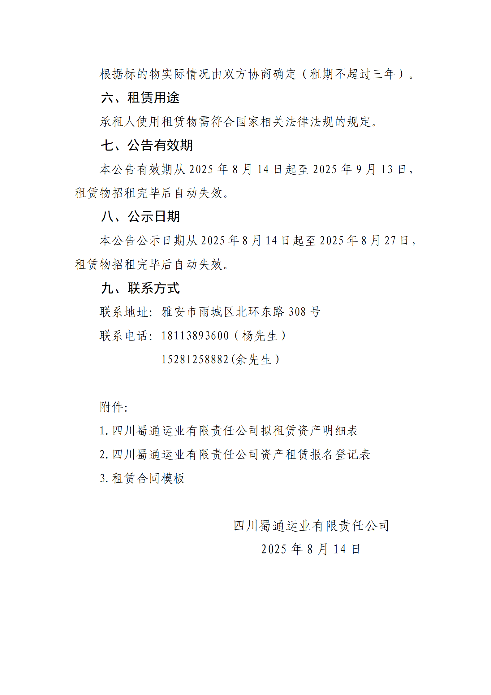 四川蜀通運業(yè)有限責(zé)任公司 關(guān)于九襄汽車站出口右側(cè)維修車間旁邊閑置場地進行掛網(wǎng)招租的公告