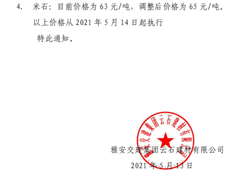 ÑŰ²½»½¨¼¯ˆFÔÆÊ¯¹«Ë¾É°Ê¯¹ÇÁÏäNÊÛƒr¸ñÇé›r±í£¨2021.5.14£©