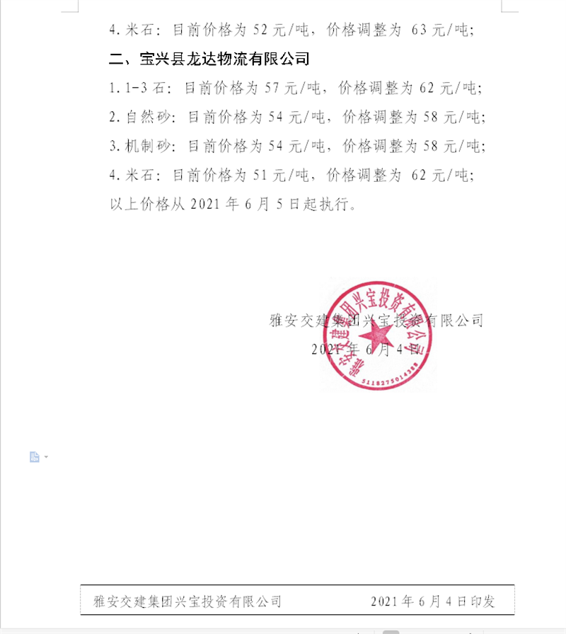 ÑŰ²½»½¨¼¯ˆF(tu¨¢n)ÔÆÊ¯¹«Ë¾É°Ê¯¹ÇÁÏäNÊÛƒr¸ñÇé›r±í£¨2021.6.20£©