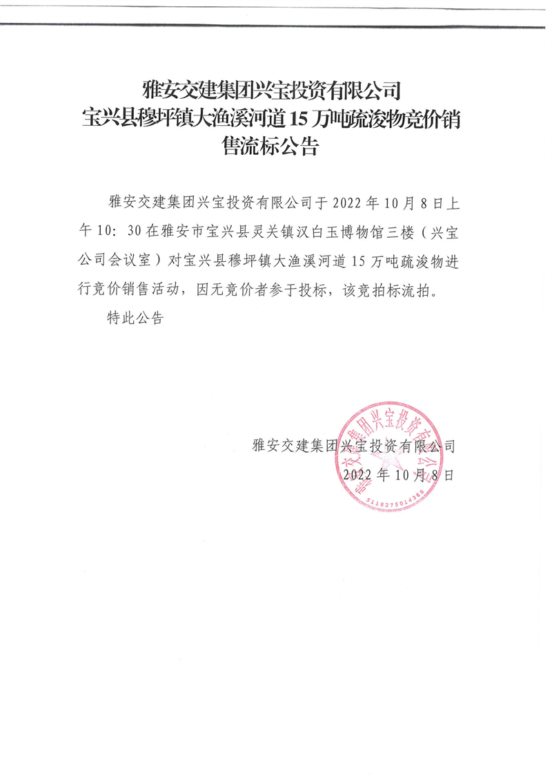 雅安交建集團云石建材有限公司成品料成交公告9.30